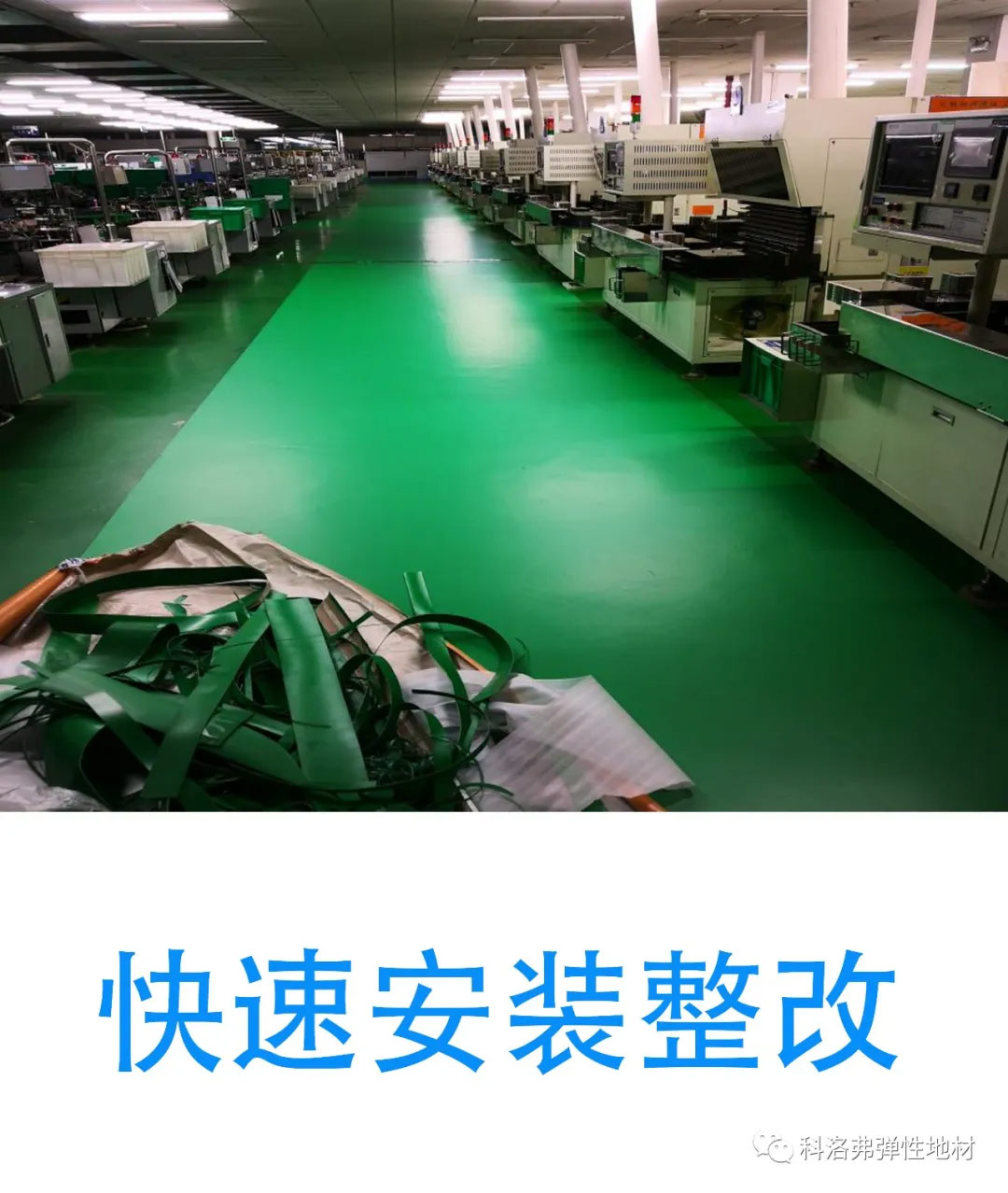 9 吸音防噪:高分子工業地板有普通地面材料無法相比吸音效果,其吸音可達12-20分貝,可以減少工廠環境噪音,營造安靜的生產環境。