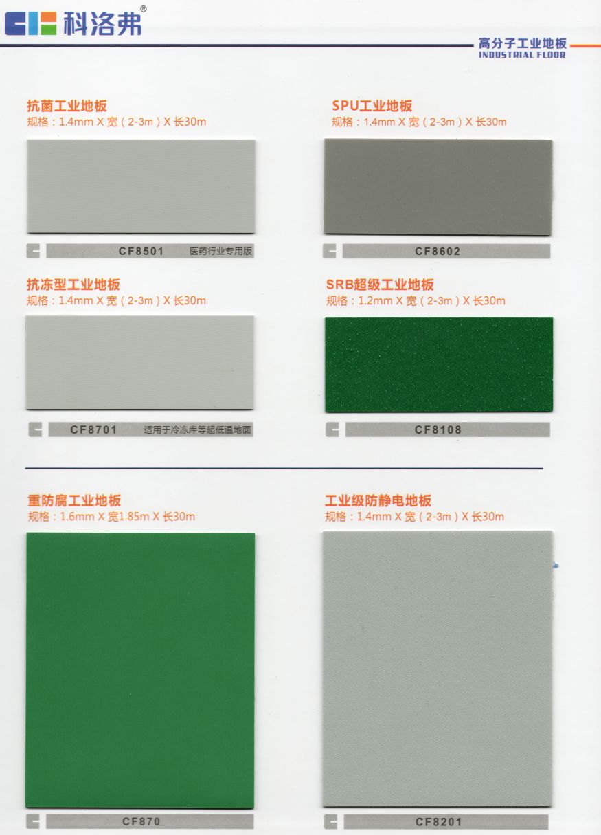 科洛弗高分子工業地板適用范圍:要求耐磨性強、耐沖擊性、高荷載、防靜電、耐酸堿、抗開裂、抗菌、環保安全的電器、電子、電器、機械(如汽車、摩托車、電梯、自行車等)、通訊設備、儀器儀表、煙草、食品、醫藥、紡織、飼料、家具、服裝、化工、塑料、文體用品等制造車間地面。