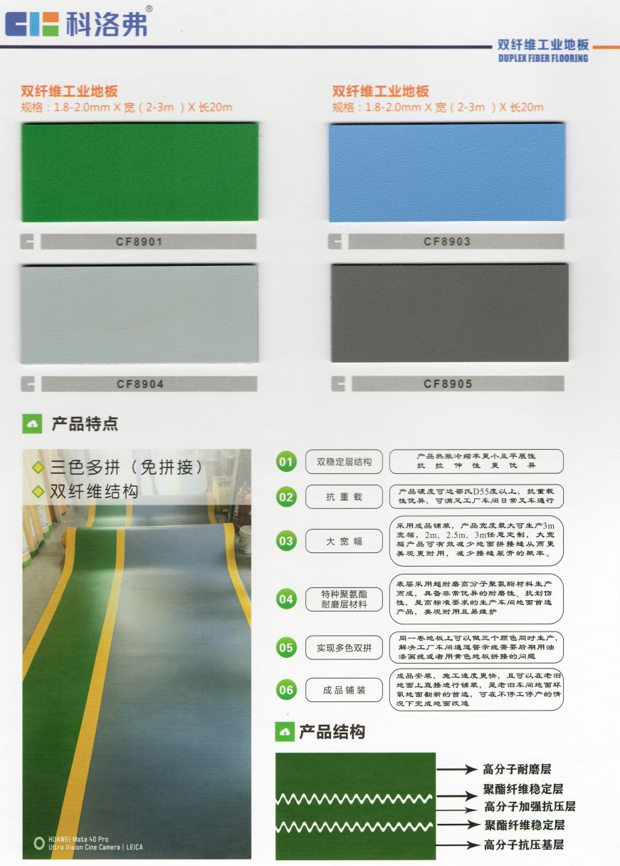 科洛弗高分子工業地板是一種采用高分子改性樹脂為原材料通過高溫熱壓成型的地板,此地板具備防油性、抗污性、抗腐蝕、防水防潮、施工工期短維修簡單、耐磨性好、抗靜電、重載、能過叉車、環保無毒、可回收再利用等優點!此產品的出現正好填補了市場快速發展帶來的空白,各項性能指標均衡且優異,可以逐步替代部份原有環氧地坪及各類水泥面工業地面,應用將逐漸增大,市場前景廣闊。