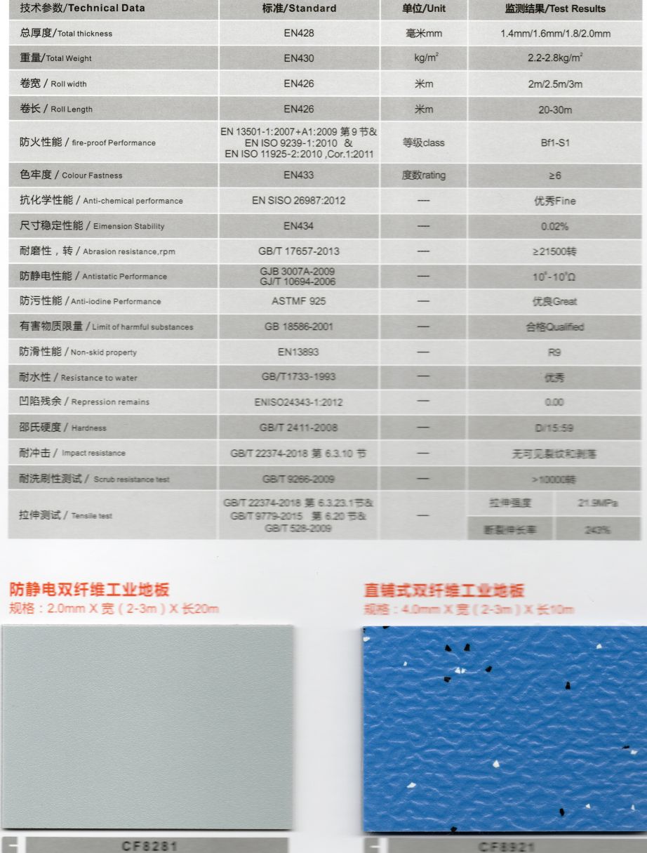 2 防靜電:獨特的防靜電配方使地板具備優異的防靜電性能。